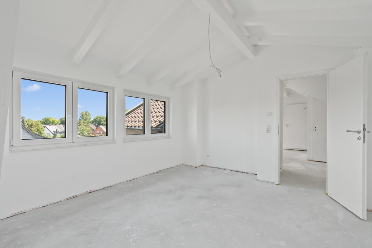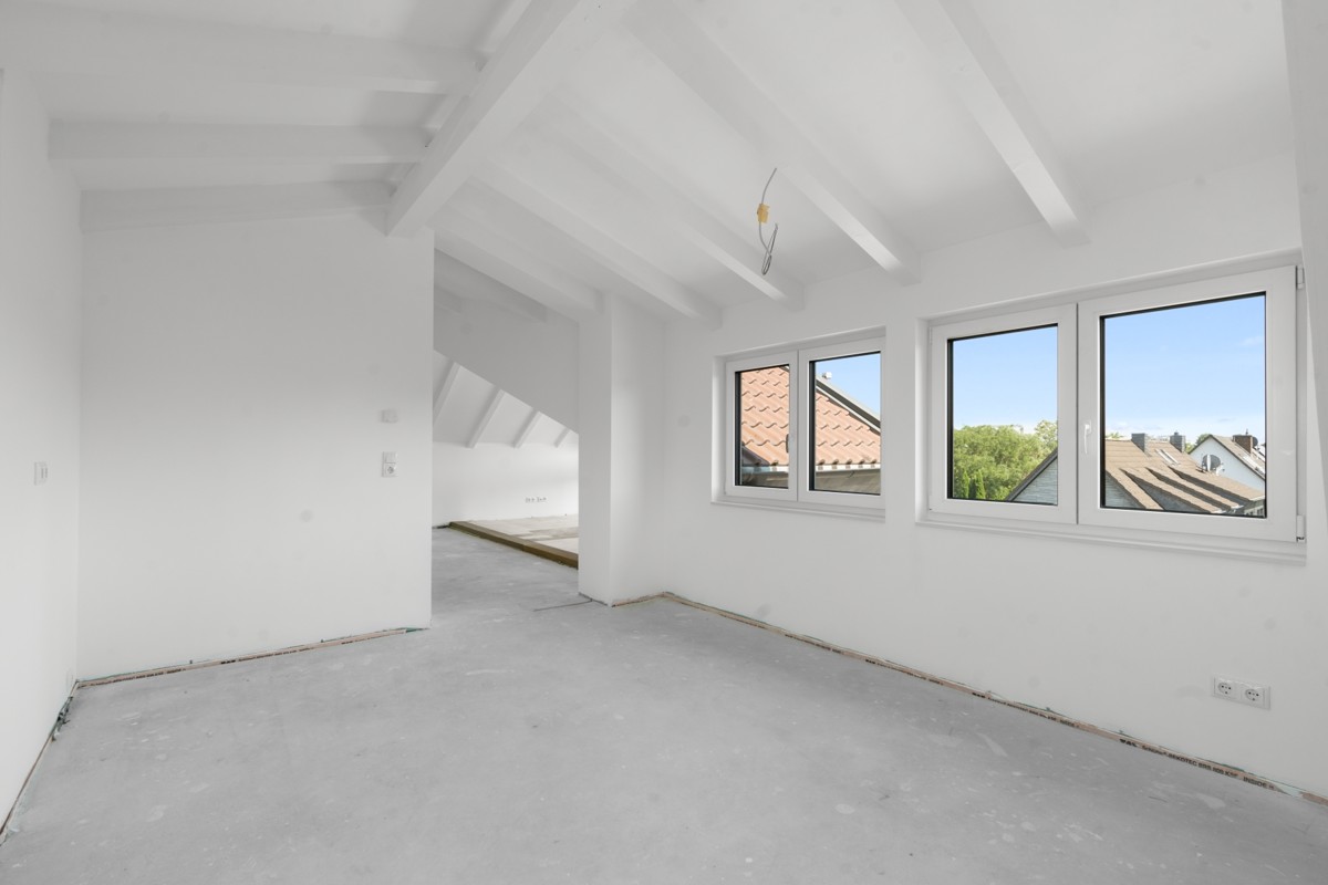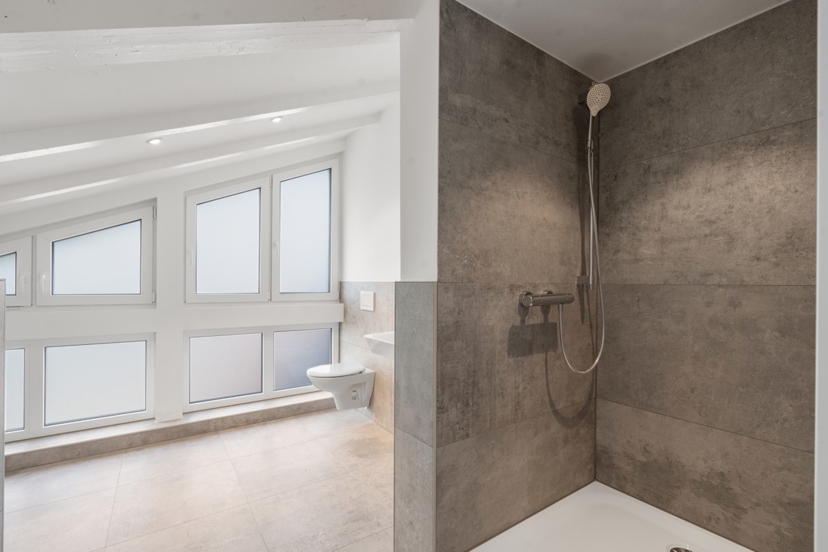 Das Tageslichtbad wurde funktional geplant und hochwertig ausgestattet: moderne Dusche, stilvolle Fliesen und durchdachtes Design. Ein praktischer Flur, bodentiefe Fenster und Details wie Deckenspots machen diese Wohnung zu einem besonderen Rückzugsort über den Dächern Frechens – für alle, die nicht einfach nur wohnen, sondern ihren eigenen Stil leben wollen.