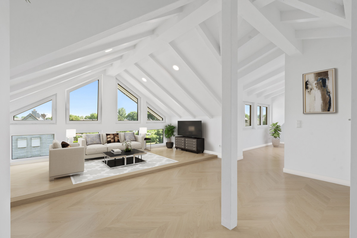 Auf 62 m² erwartet Sie eine Wohnung mit echtem Loft-Charakter – ideal für Individualist*innen, Paare oder Kreative mit Sinn für das Besondere. Sichtbare Dachbalken, offene Grundrissgestaltung und viel Tageslicht verleihen dieser Einheit eine ganz eigene Atmosphäre – hell, modern, stilvoll.